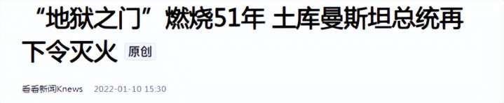 看看新闻Knews:“地狱之门”燃烧51年 土库曼斯坦总统再下令灭火