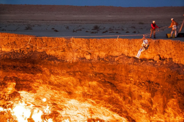 一个叫乔治·库鲁尼斯的探险家,他曾在2014年的时候,成为了全世界第一个进入火焰坑的人,并且还成功从坑内采集到了土壤和微生物样本。